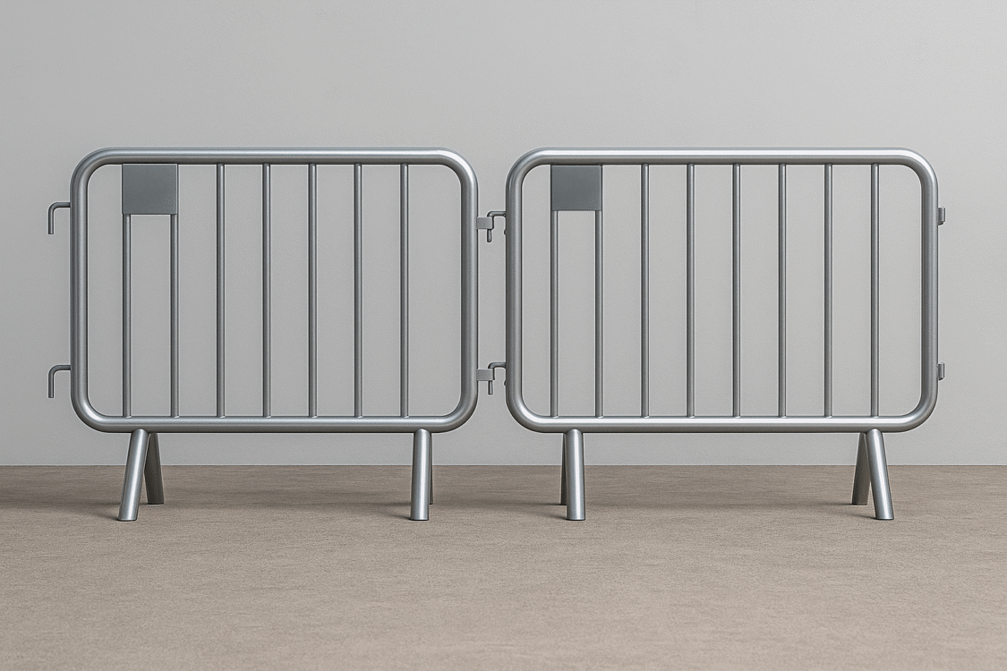 O gradil de contenção KMI é uma solução robusta para segurança e organização de espaços. Produzido em aço de alta resistência com zincagem eletrolítica, oferece durabilidade superior. Seu sistema de encaixes universais permite montagem rápida sem ferramentas, e a base em “pé-de-galinha” garante máxima estabilidade até em grandes pressões de público.
